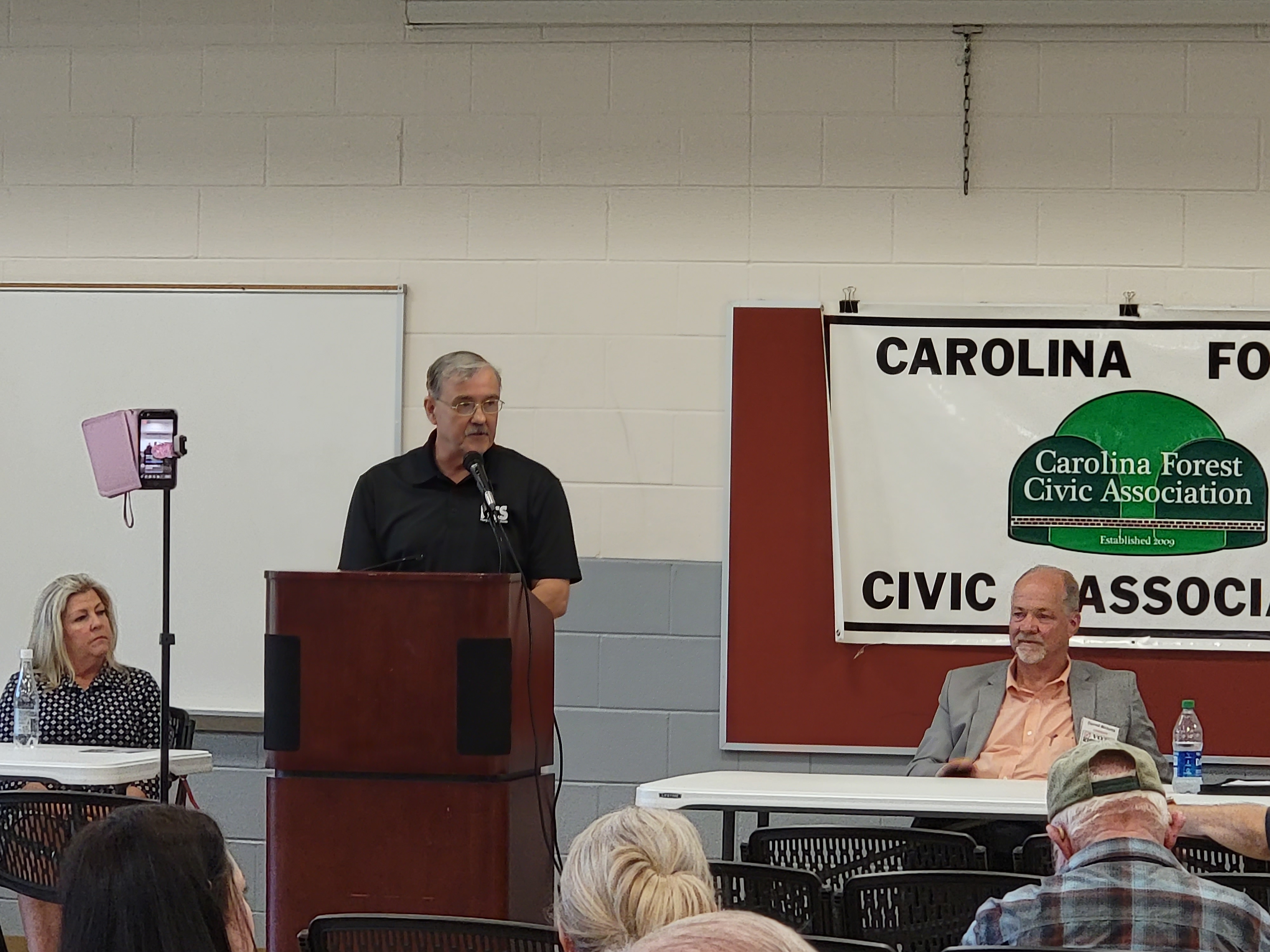 Discussing the Carolina Forest Blvd widening program and updates on Ride III Programs in Carolina Forest (Postal Way Extension and Postal Way/CFB Intersection upgrades)
